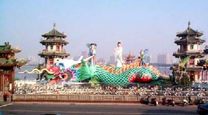 三、將左營區春秋閣.龍虎塔.孔廟及蓮花的圖片向學生展示,簡要敘述其特色以配合課文中的猜謎。